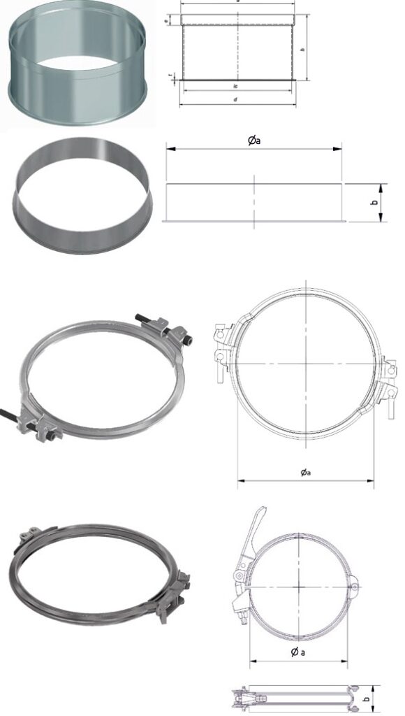 Pieejamas graudu cauruļu skavas ar skrūvju saskrūvi, kā arī ar ātro klipša savilci.