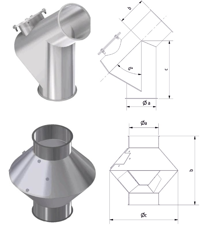 Piedāvājam graudu Y un T veida atzarus un lūkas ar 2 un 3 mm biezumu, kā arī variantus ar HDPE vai poliuretāna oderējumu paaugstinātai nodilumizturībai