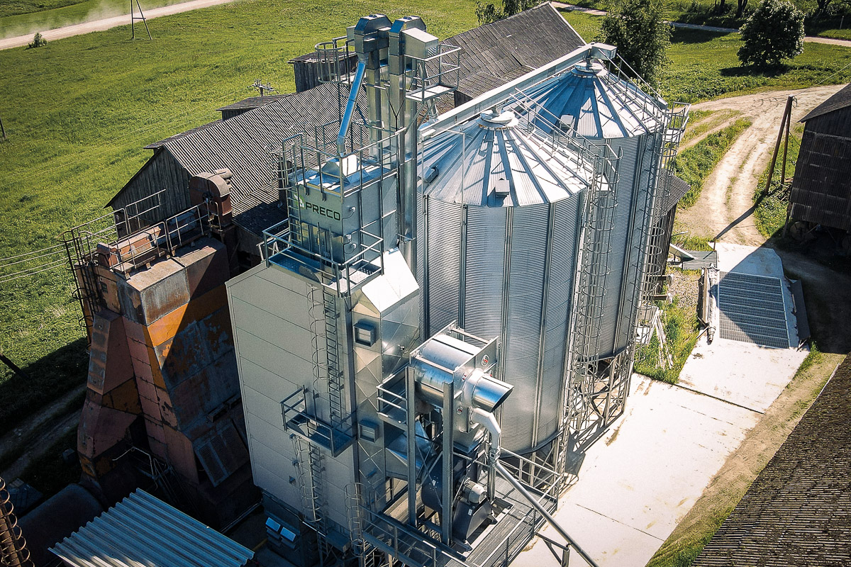 Projekts etapos, kas aizsākās ar plakangrīdas torni 2016. gadā un turpinājās 2019. gadā ar esošās mobilās graudu kaltes nomaiņu uz Preco siltinātu graudu caurplūdes tipa kalti ar rekuperācijas funkciju un vadību no LCD skārienjūtīgā ekrāna.
