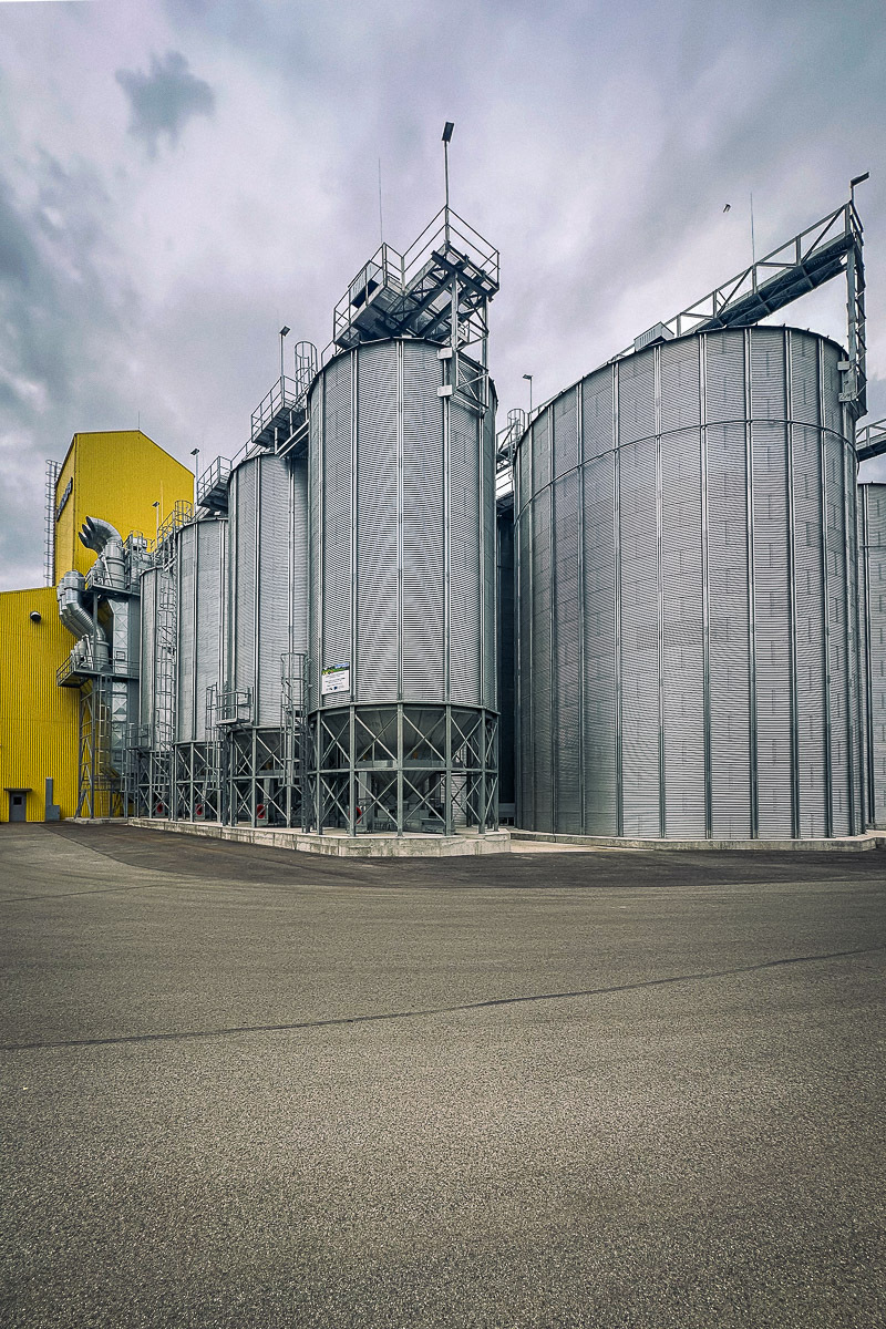 Glabāšanas risinājums veidots no atsevišķiem MYSILO mitro un sauso graudu konusveida silos operatīvai graudu kustībai.