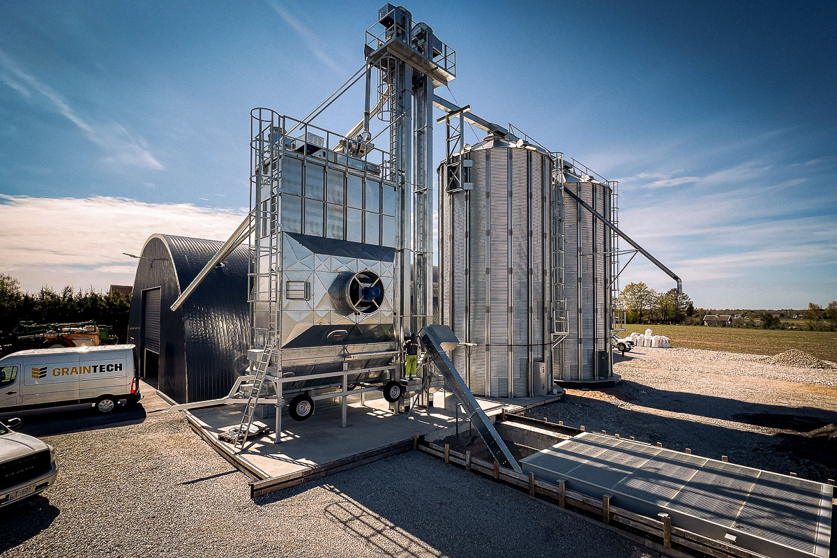 Objekts Igaunijas ziemeļos klientam, kurš bija uzcēlis jaunu angāru un vēlējas tam blakus graudu kalti ar uzglabāšanu.